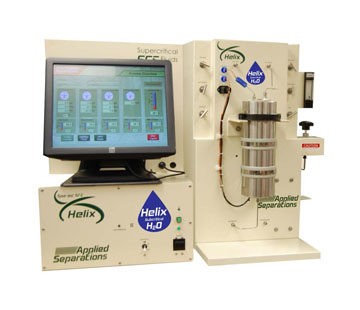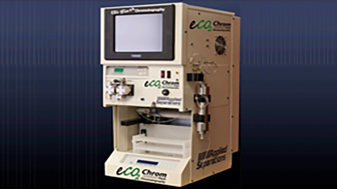 A chromatogram of an 8 component mix contain a wide variety of compounds including both acidic and basic chemicals. This chromatogram is an example of separation scope of the instrument and the liquid CO2 separation technique.